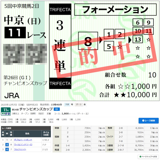 【チャンピオンズカップ結果 2025】10年ぶりの牝馬勝利!ダブルハートボンドが新たな砂の女王へ 坂井瑠星Jは同レース3連覇!